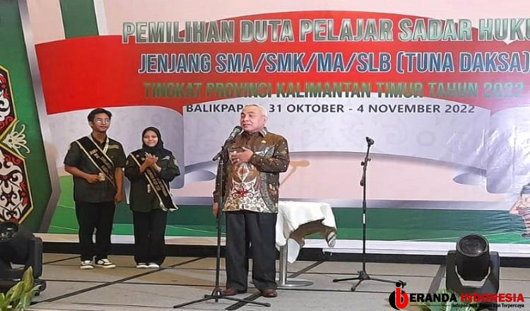 BALIKPAPAN – Gubernur Kaltim, Isran Noor, mengapresiasi dan bangga digelarnya Pemilihan Duta Pelajar Sadar Hukum jenjang SMA/SMK/MA/SLB (Tuna Daksa) tingkat Provinsi Kalimantan Timur Tahun 2022 yang merupakan kegiatan kolaborasi Dinas Pendidikan dan Kebudayaan (Disdikbud) Provinsi Kaltim dengan Kejaksaan Tinggi (Kejati) Kaltim yang digelar di Hotel Novotel Balikpapan 31 Oktober hingga 4 November 2022.