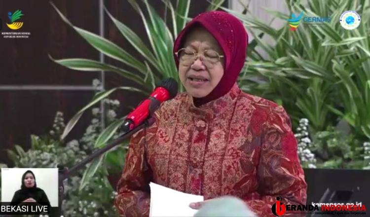 PALANGKARAYA : Menteri Sosial, Tri Rismaharini, saat menyampaikan sambutan secara webinar yang dipusatkan di Sentra Pengudi Luhur Bekasi menyampaikan momentum Peringatan Hari Kesehatan Jiwa Sedunia (HKJS) mengatakan stop pemasungan saudara-saudara kita yang menyandang disabilitas mental.