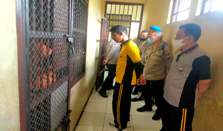 Kapolres Batu Oskar Syamsuddin memeriksa tahanan dan menanyakan kondisi tahanan apakah dalam keadaan sehat, serta menanyakan keluhan tahanan selama berada dalam rutan Polres Batu.