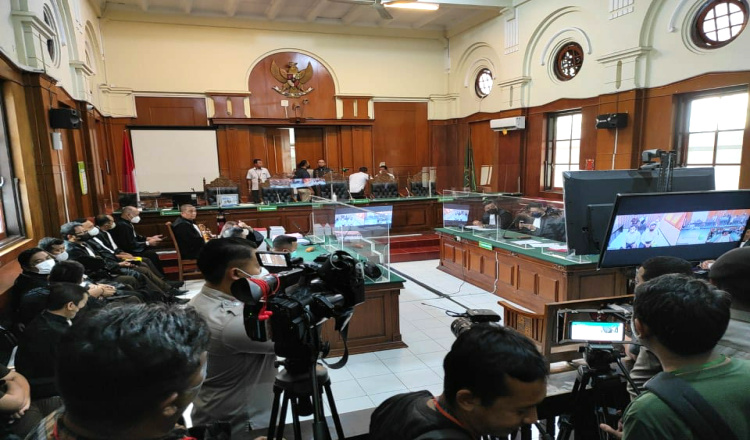 Dalam sidang perdana ini dengan agenda Pembacaan Dakwaan oleh Jaksa Penuntut Umum (JPU) terhadap 5 orang Terdakwa yang mengikuti persidangan secara virtual dari dalam ruang tahanan Kepolisian Daerah Jawa Timur. Sementara Penasihat hukum ke-5 Terdakwa yang hadir.dalam ruang sidang.