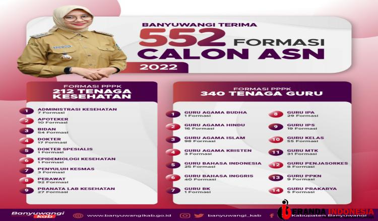 BANYUWANGI – Kabupaten Banyuwangi mendapatkan kuota ASN tahun 2022 sebanyak 552 formasi.
