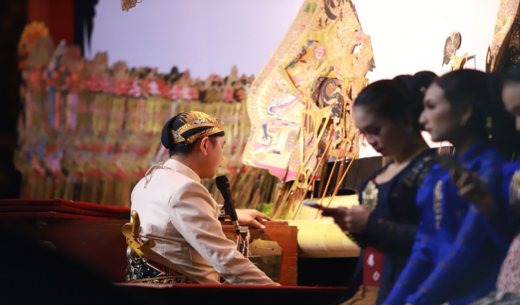 Selanjutnya Wali Kota Batu menyerahkan gunungan wayang sebagai simbol dimulainya pagelaran wayang kulit oleh Ki Dalang Dr. Supriyanto, SH, MH.