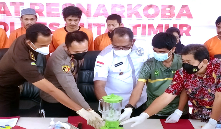 KUTAI TIMUR – Polres Kutim melaksanakan pemusnahan barang bukti narkoba sebanyak 148,87 gram dari hasil pengungkapan 28 kasus dengan 35 orang tersangka yang diamankan pada kisaran Bulan Oktober hingga awal November 2022.