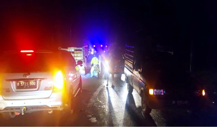 Hingga pukul 03.45 WIB, ketiga unit bus kontingen sudah melewati titik longsor namun hambatan perjalanan masih tinggi karena banyaknya kendaraan yang melaju dari kedua arah sehingga lebih banyak berhenti.