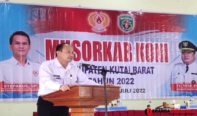 KUTAI BARAT – Bupati Kubar, FX Yapan, melalui sambutan tertulisnya yang dibacakan oleh Kepala Badan Keuangan dan Aset Daerah (BKAD), Sahadi, berharap agar Ketua Umum KONI Kubar yang baru terpilih secara aklamasi dalam Misorkab KONI Kubar yakni Tobias F Kainama dapat melaksanakan tugas dengan optimal.