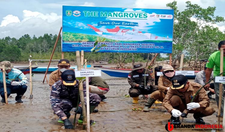 KUTAI TIMUR – Penghijauan pesisir dengan menggunakan 7.700 bibit pohon bakau dari jenis Risophora dan Sonerata sp dilakukan oleh Lanal Sangatta bersama dengan pemuda, masyarakat, OPD terkait, ormas dan LSM yang berada di Kutai Timur, Selasa (26/07/2022).