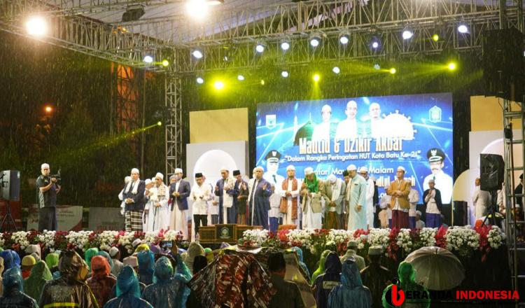 Derasnya air hujan tidak melunturkan niat ratusan masyarakat Kota Batu untuk tetap memanjatkan dzikir dan sholawat.