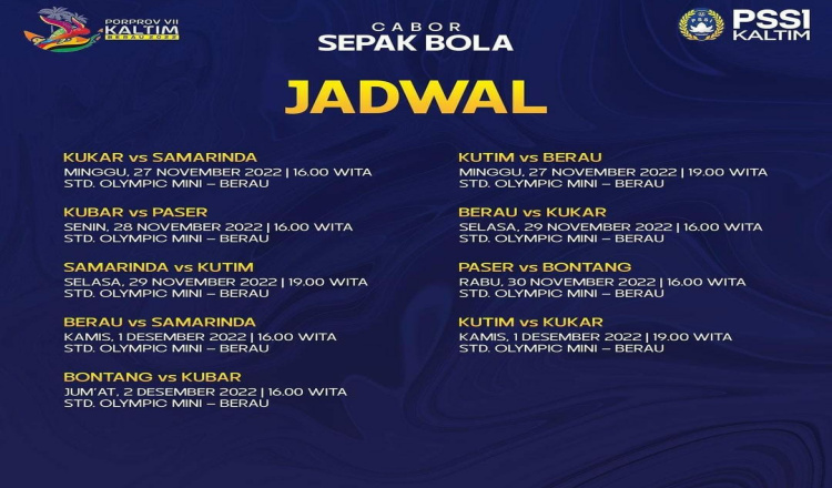 BERAU – Dari hasil drawing Panpel Cabor Sepak Bola Porprov VII Kaltim Berau 2022, tim sepak bola Kutim masuk dalam Grup A. Kutim siap melawan tim sepak bola dari Kutai Kartanegara (Kukar), Samarinda dan tuan rumah Berau.