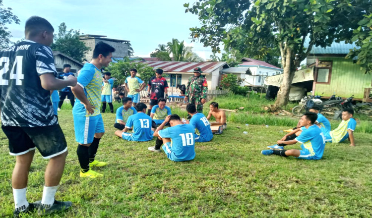 KUTAI TIMUR – Kodim 0909/Kutai Timur selaku satuan kewilayahan yang juga mempunyai tugas menjaga keamanan wilayah perkuat ketahanan wilayah dan kondusifitas wilayah termasuk dalam pelaksanaan kegiatan pertandingan sepak bola persahabatan antara kesebelasan Desa Batu Timbau, Kecamatan Batu Ampar dan kesebelasan Desa Longsegar, Kecamatan Telen.