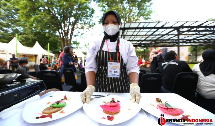 “Sama sekali tidak menggunakan pewarna buatan semuanya alami,” jelas siswa kelas XII Boga Satu SMK Sritanjung, Banyuwangi ini. (Az)